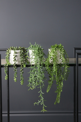 Set of 3 Trailing Plants in Matte White Ceramic Pots Home at